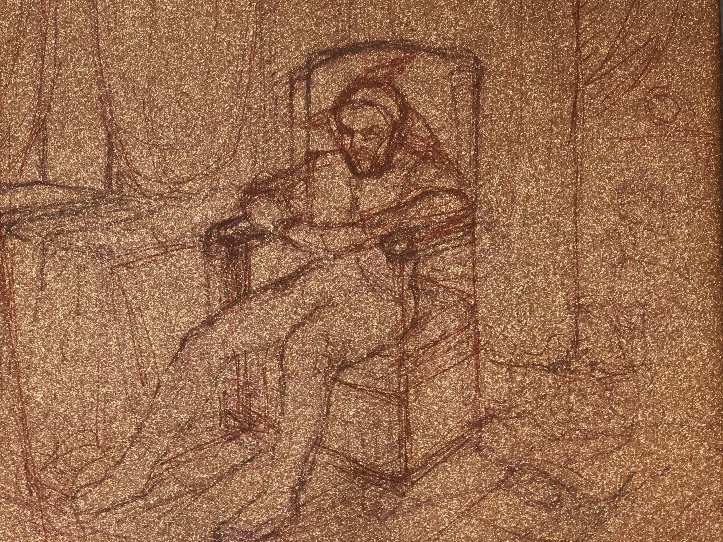 Copper Glitter Canvas is stretched like a regular canvas. The texture will hold marker like a liquid, keeping it active and able to blend like an oil paint. The copper color will glow through the transparent marker, like enamel over metal. A neutral color sketches the under-drawing to begin development.
